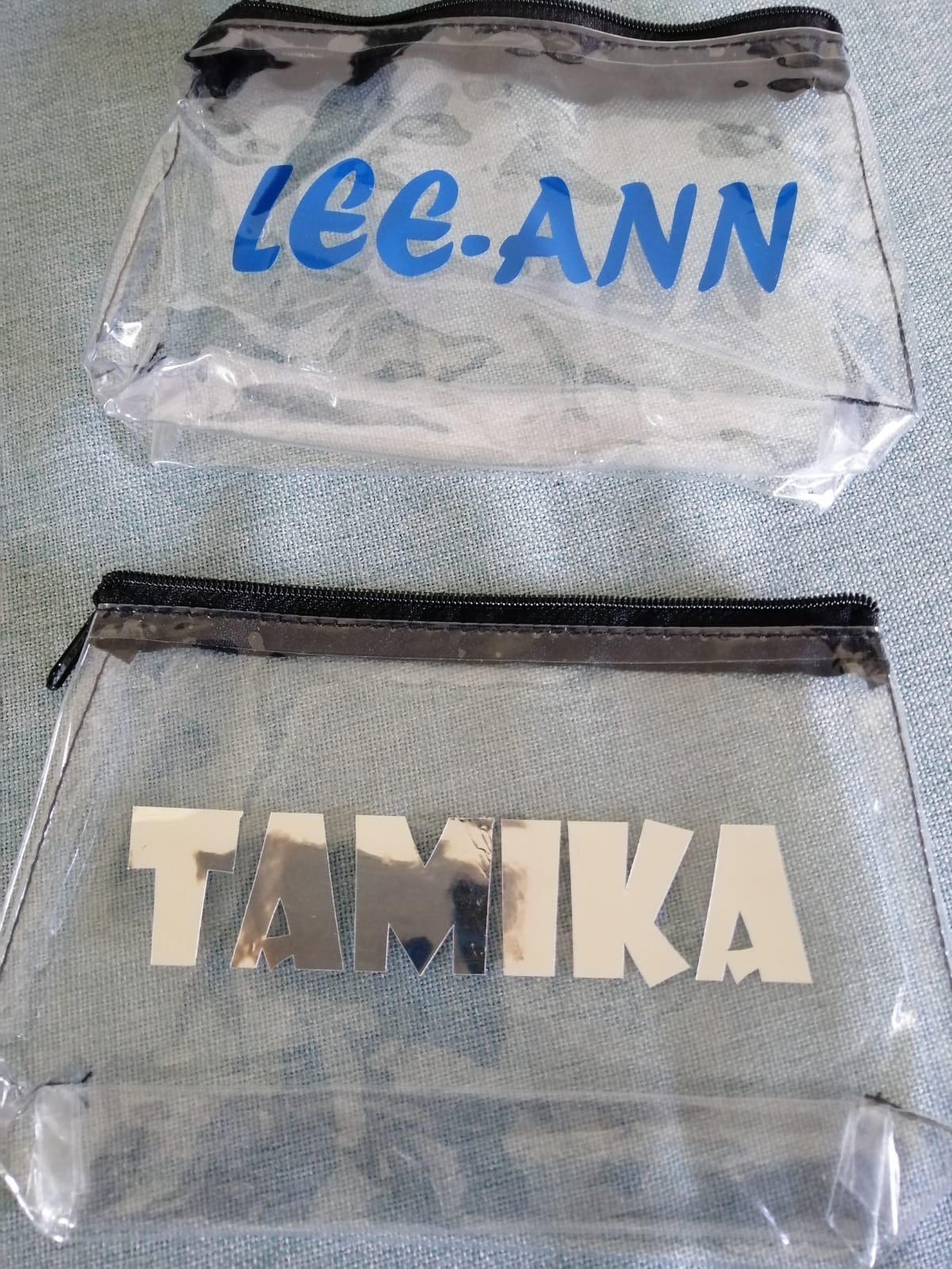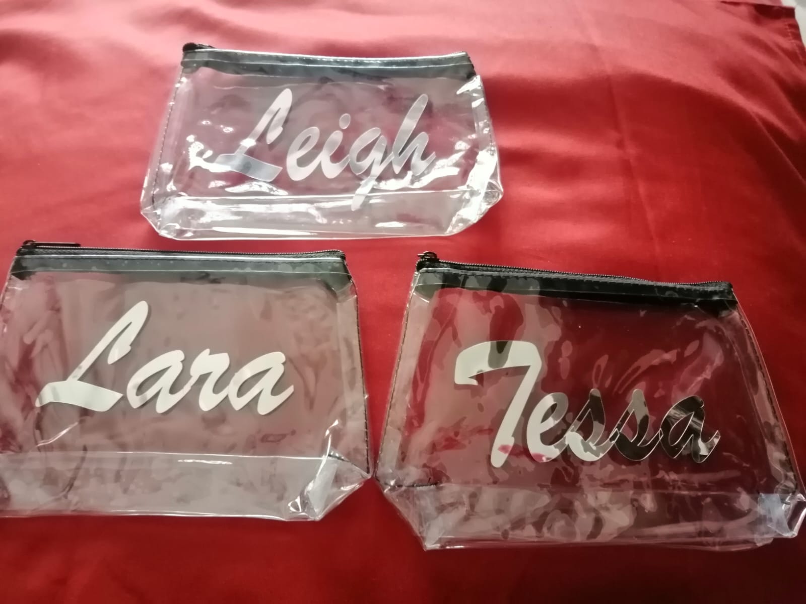 + Free PickupPVC cosmetic bag. Can be personalised with vinyl in various colours with a name, image or company name.