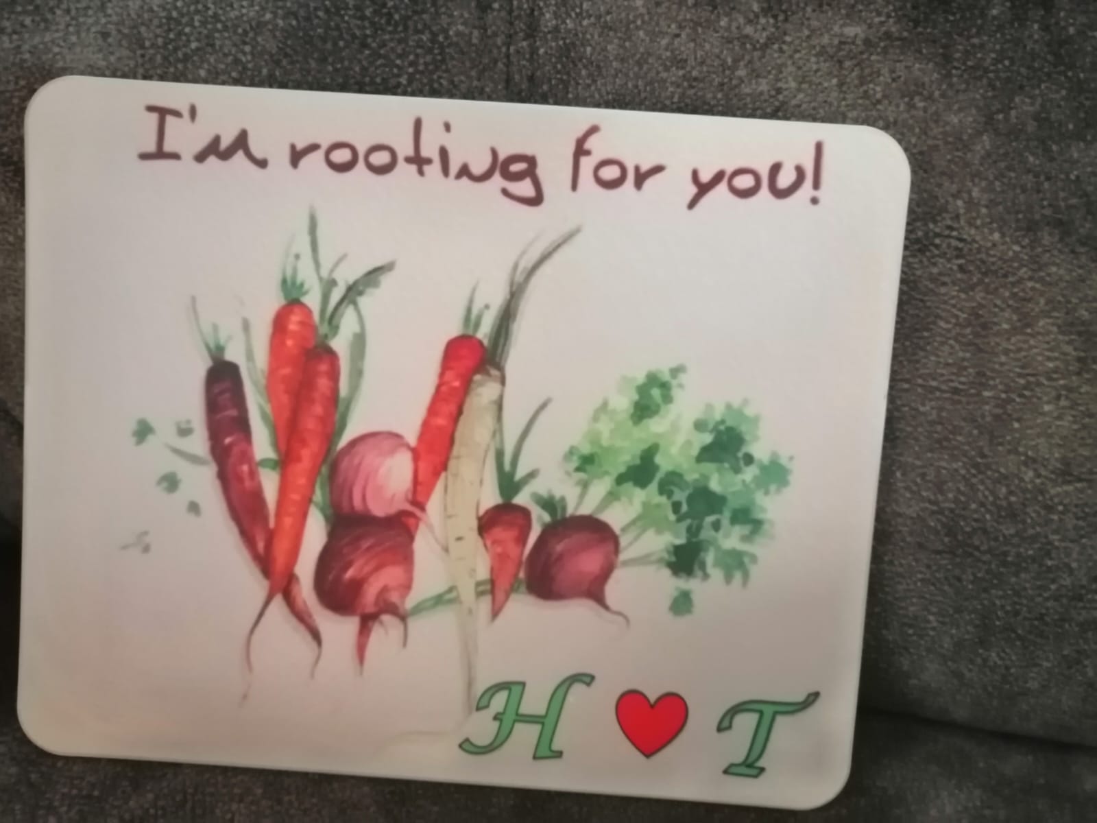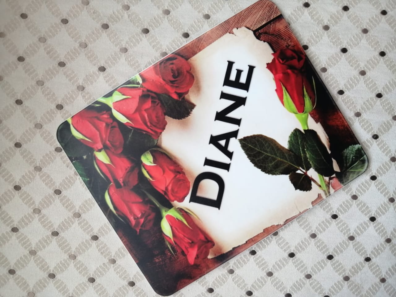 Polymer cutting board that can be personalised with an image of your choice on one side. Comes with nonslip, firm grip stickies for the back.