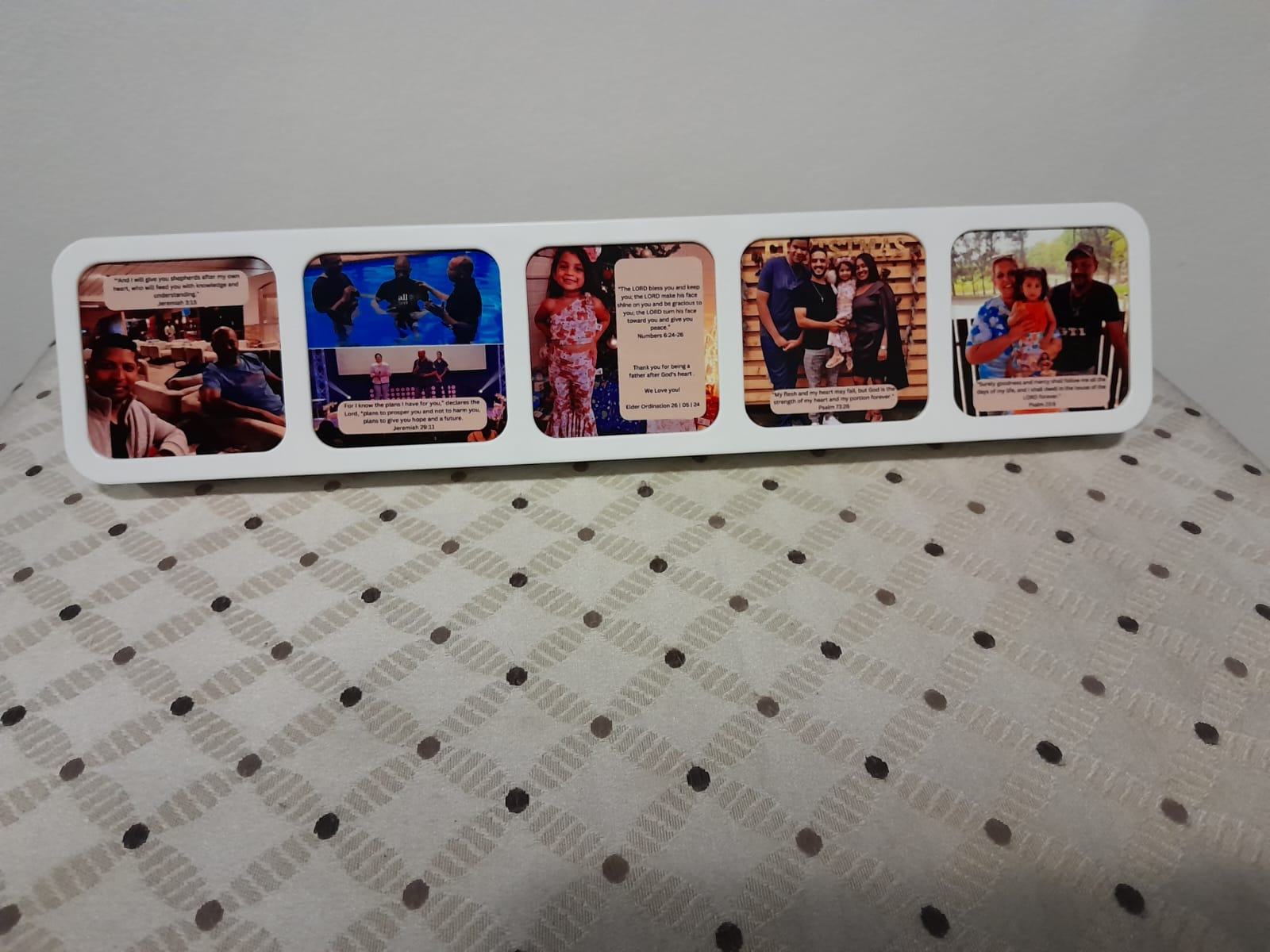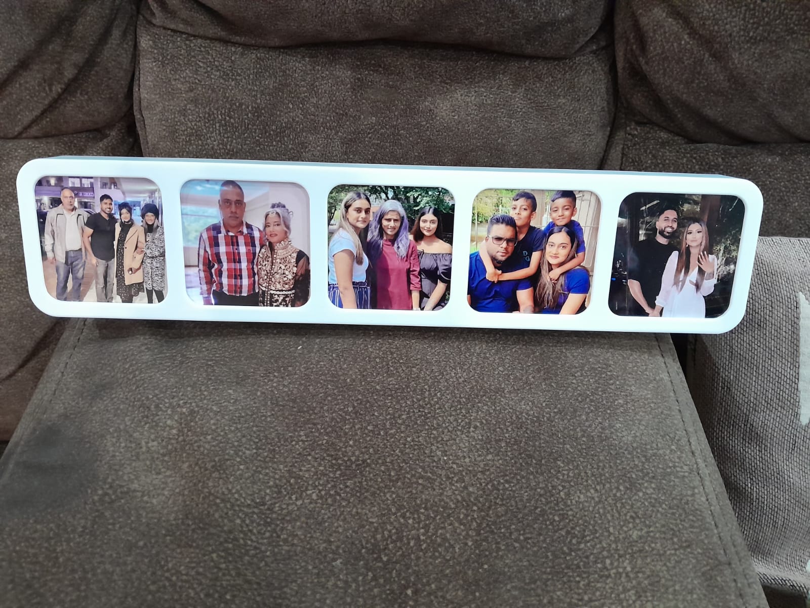 + Free PickupRectangular shaped white photoframe that has 1 metal plate insert to print on but the photoframes has 5 windows to display your memories.