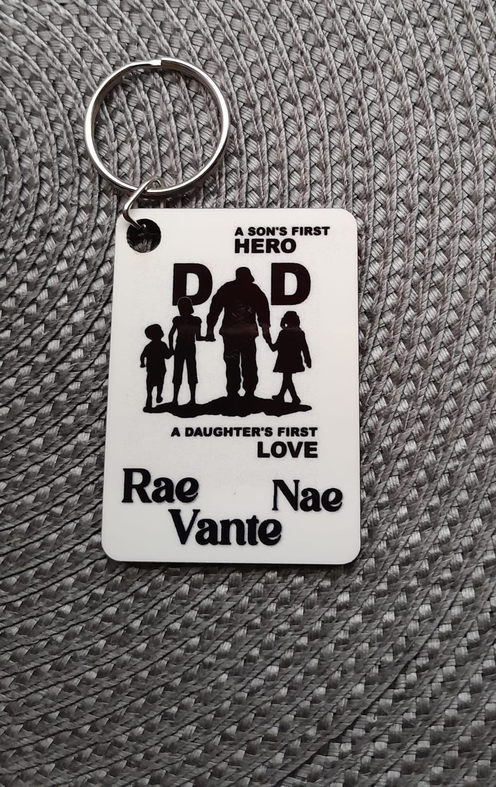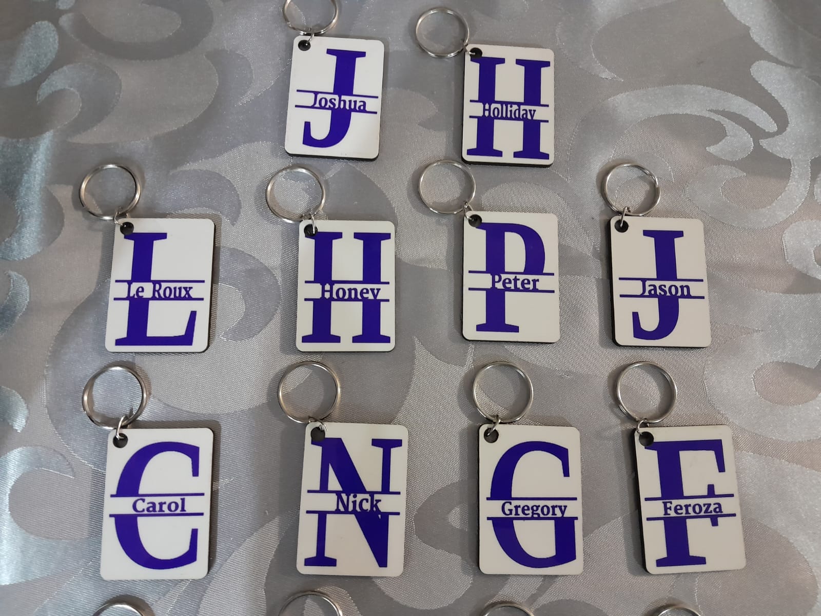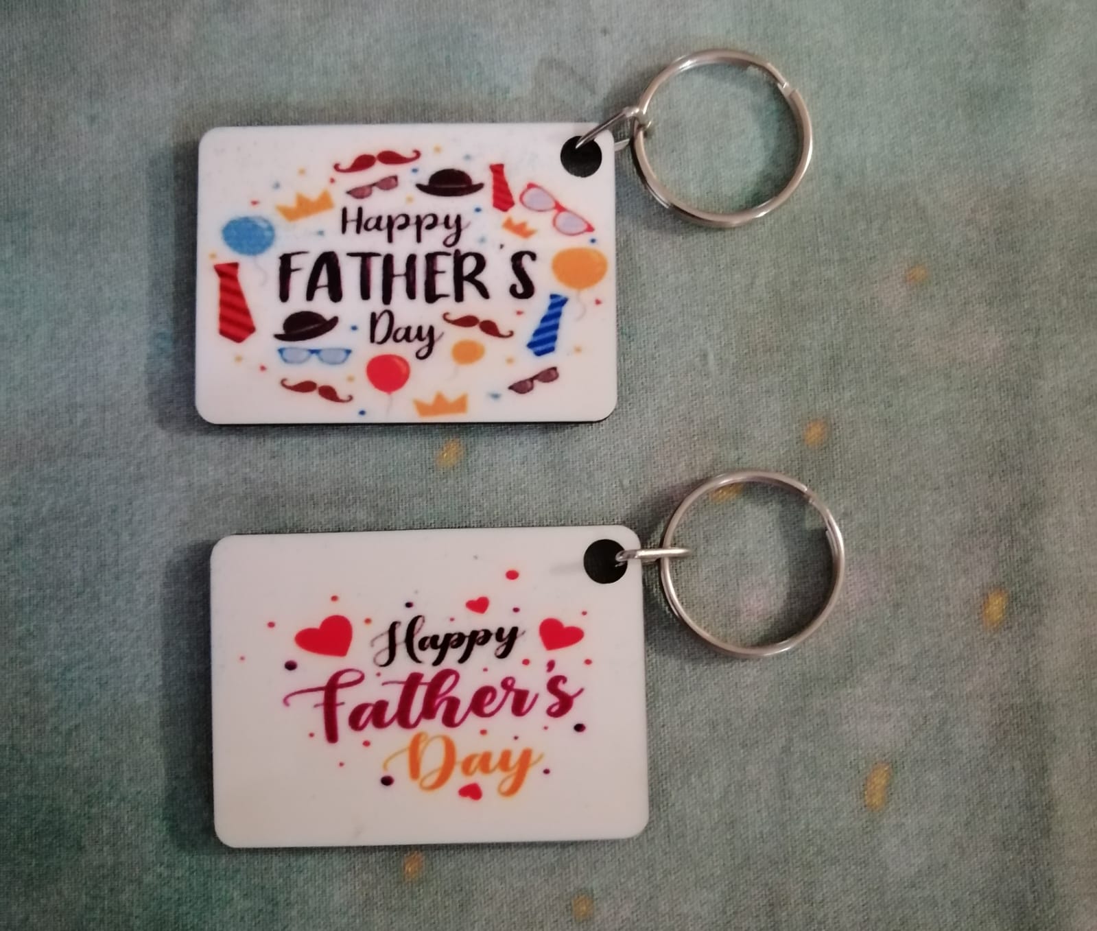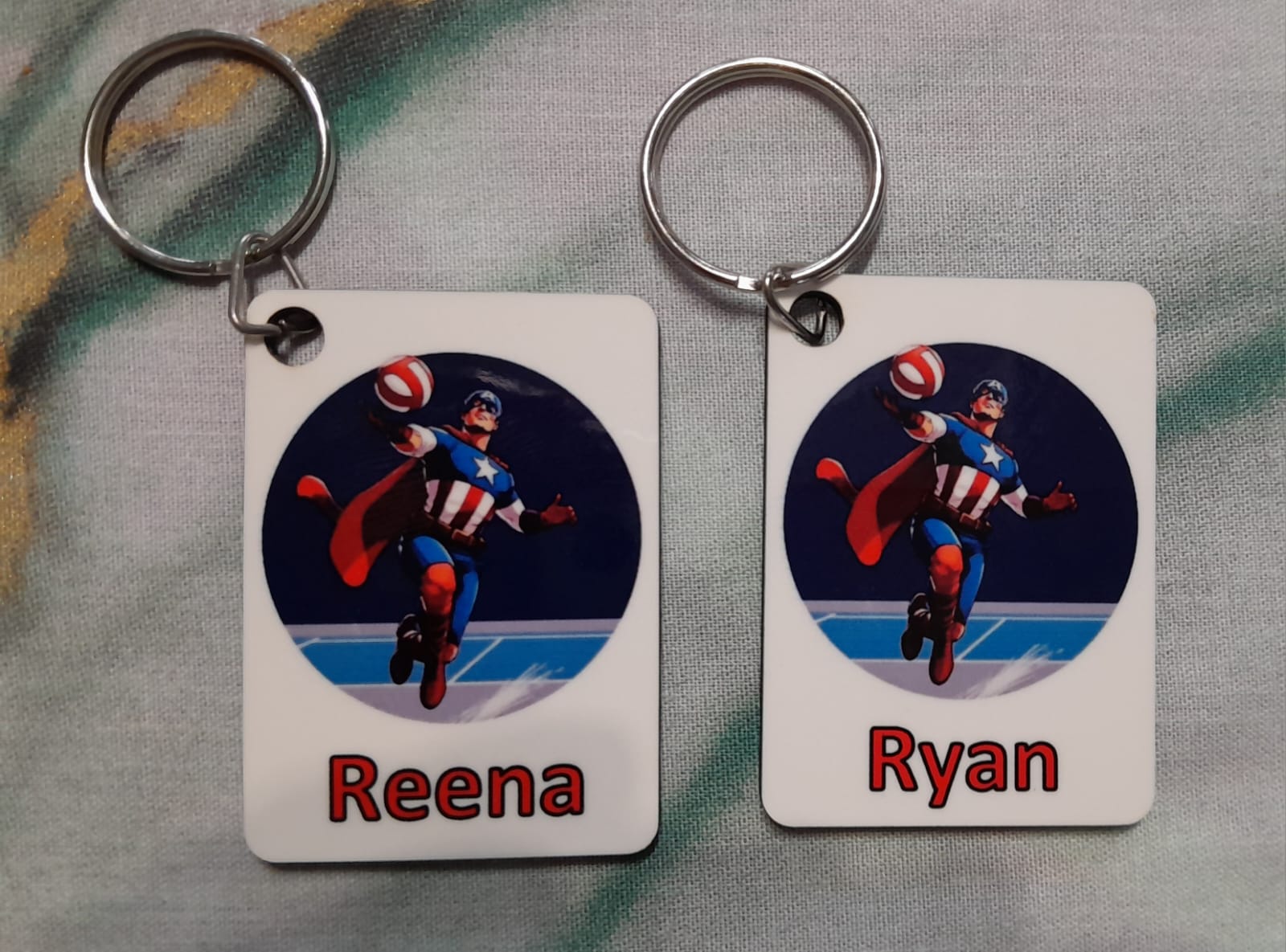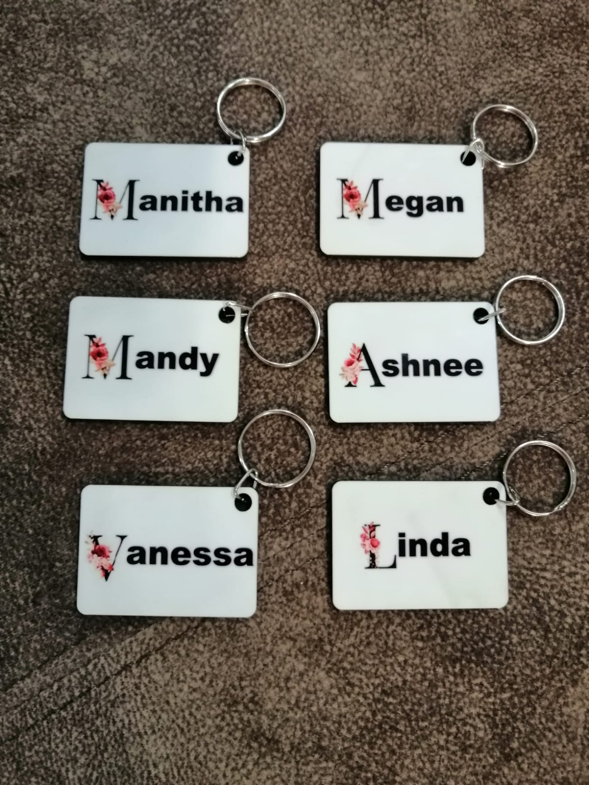 Hardboard rectangular shaped keyring. Printing done on one side in high gloss finish. Very durable.