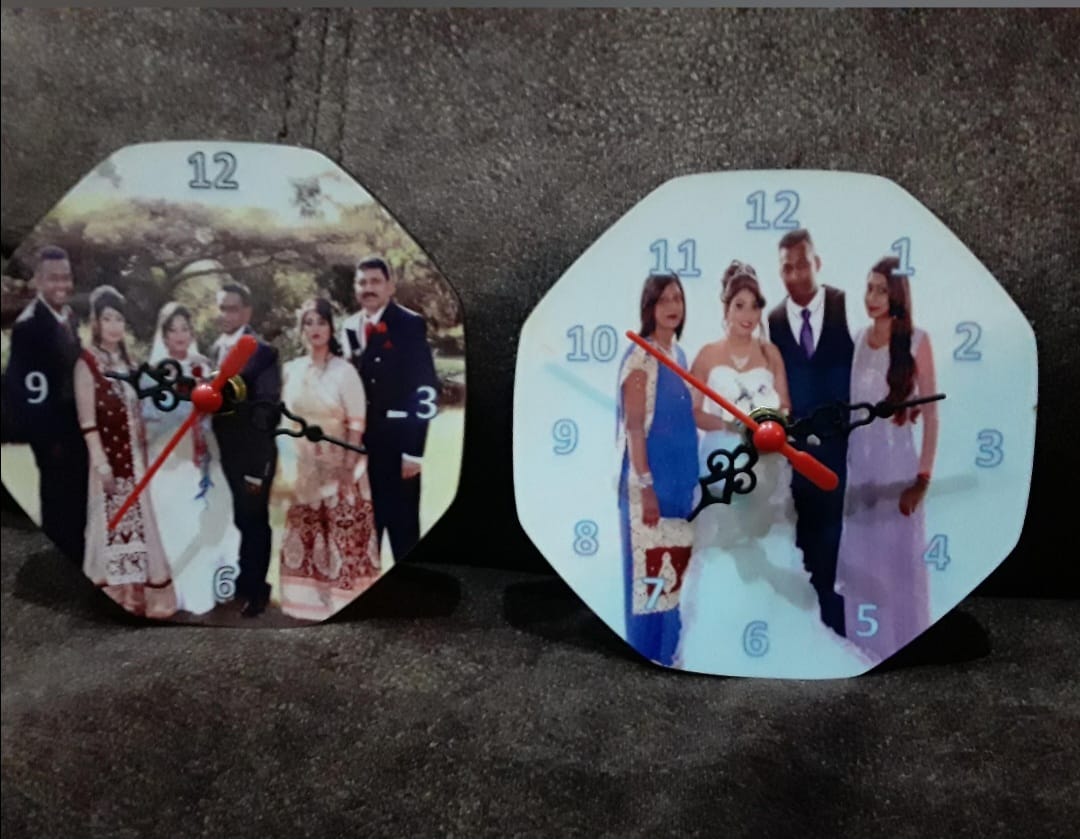 Hardboard octagon shaped clock that can be personalised with an image of your choice. Batteries excluded but comes with mechanism.