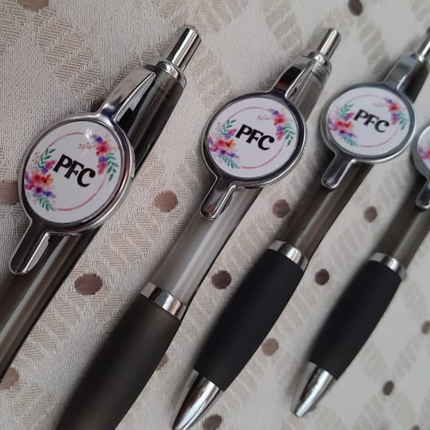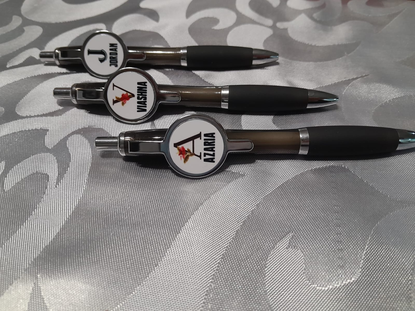 Personalised pens available in black & blue. Printable disc with a name or image of your choice.