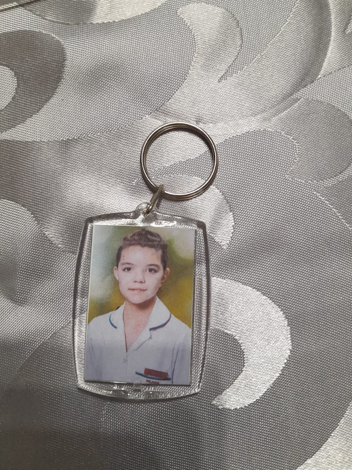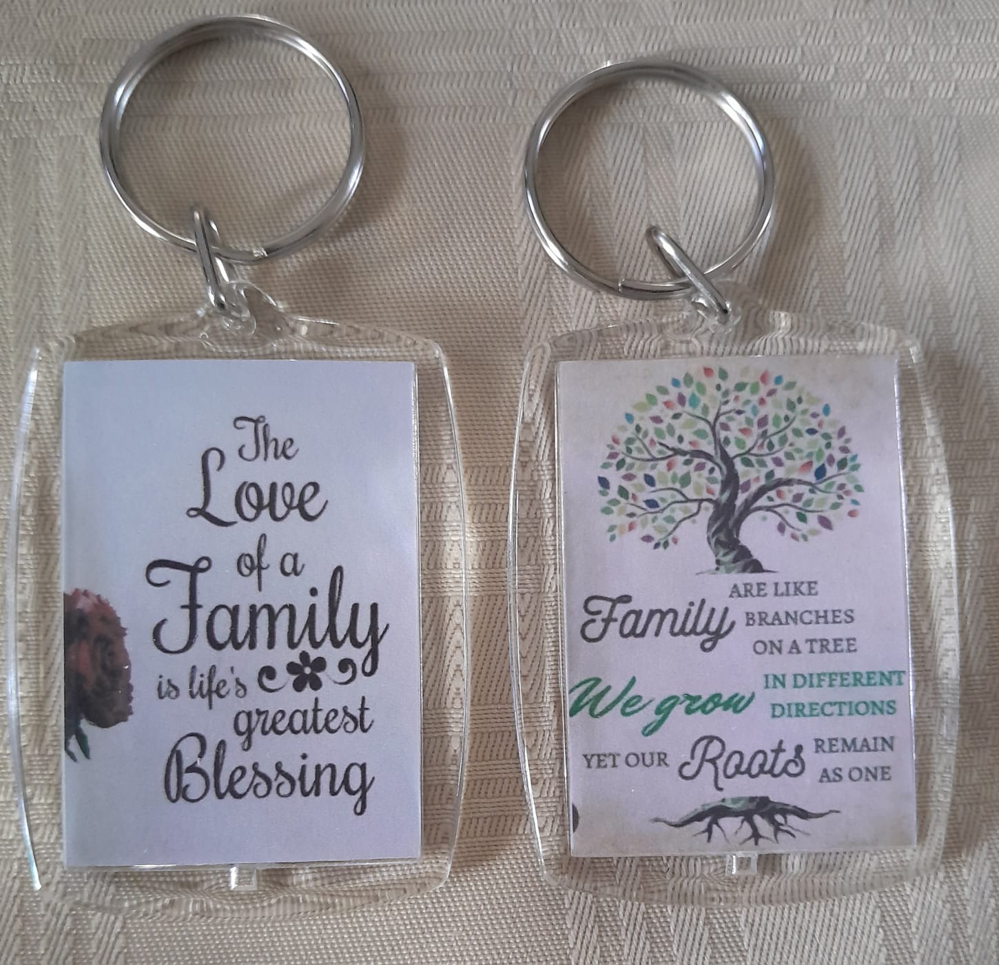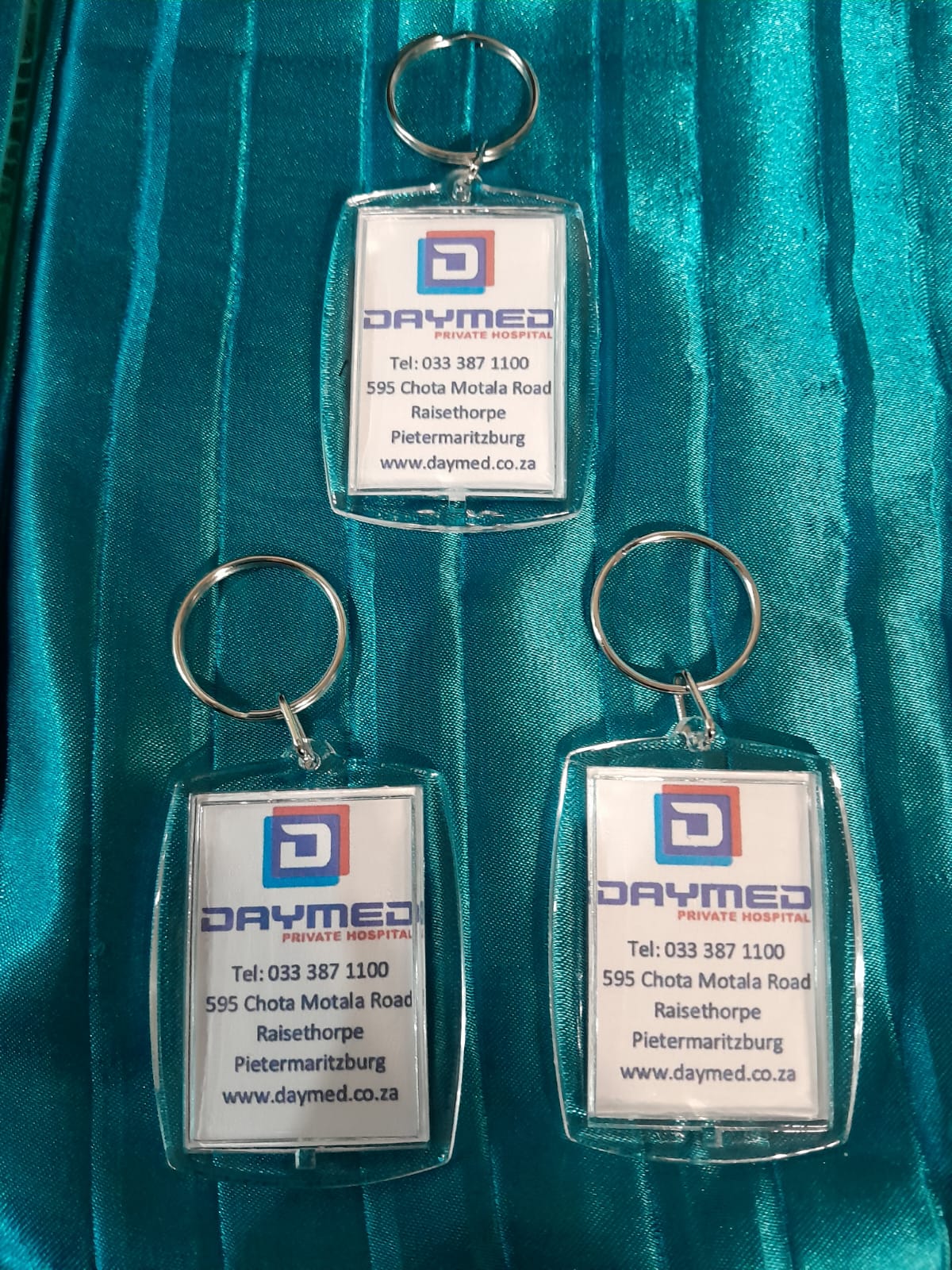 Plastic keyrings with personalised Insert of printed images/pictures that are double sided and are individually packaged.