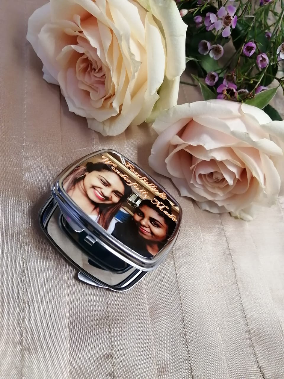 + Free PickupHigh quality square metal mirror in silver with printable metal insert. Printing in vibrant high gloss prints that can fit perfectly into your bag for easy on the go use.