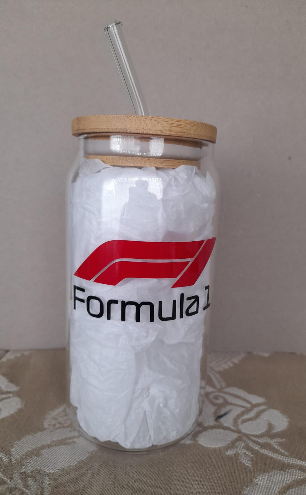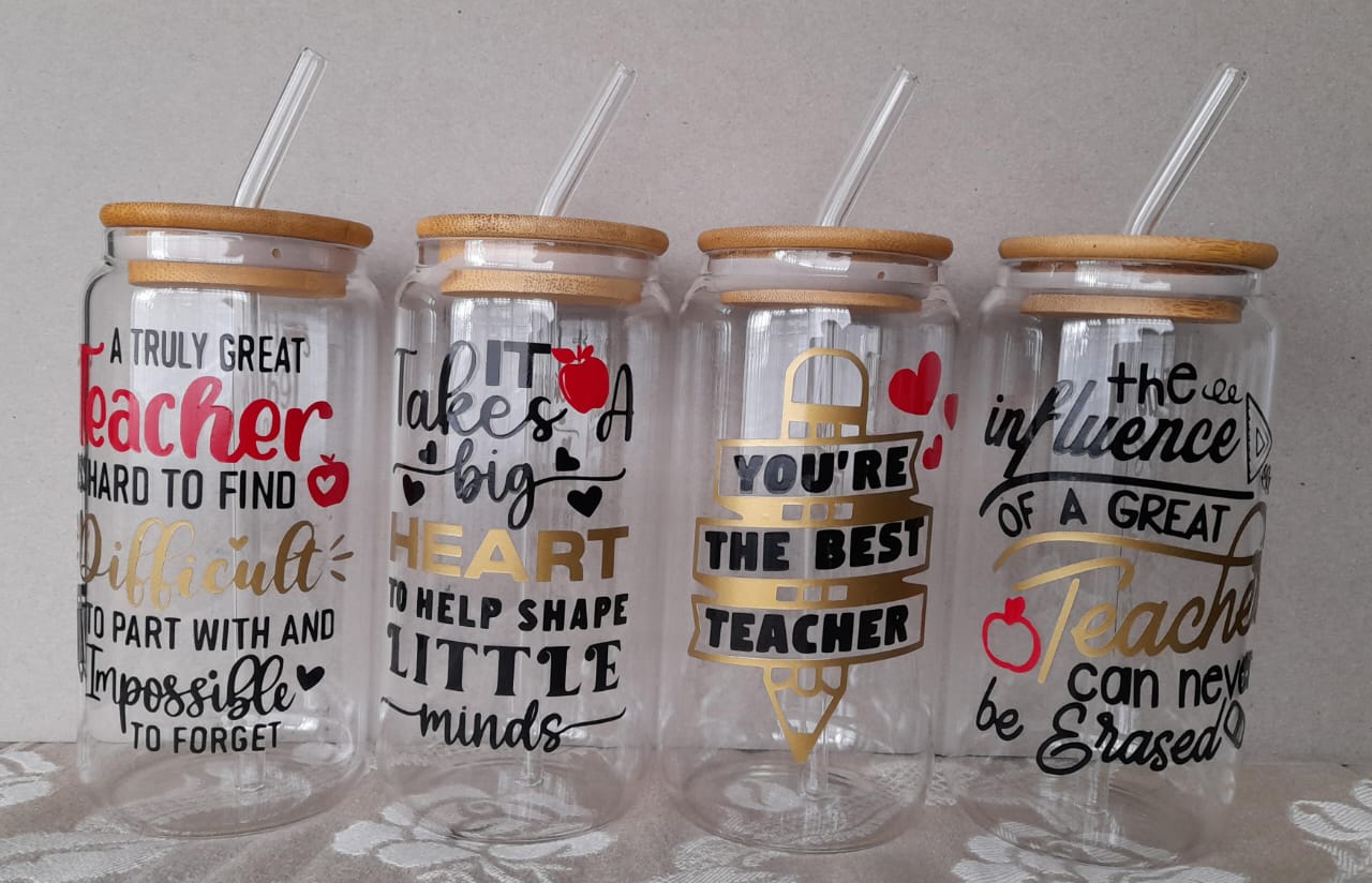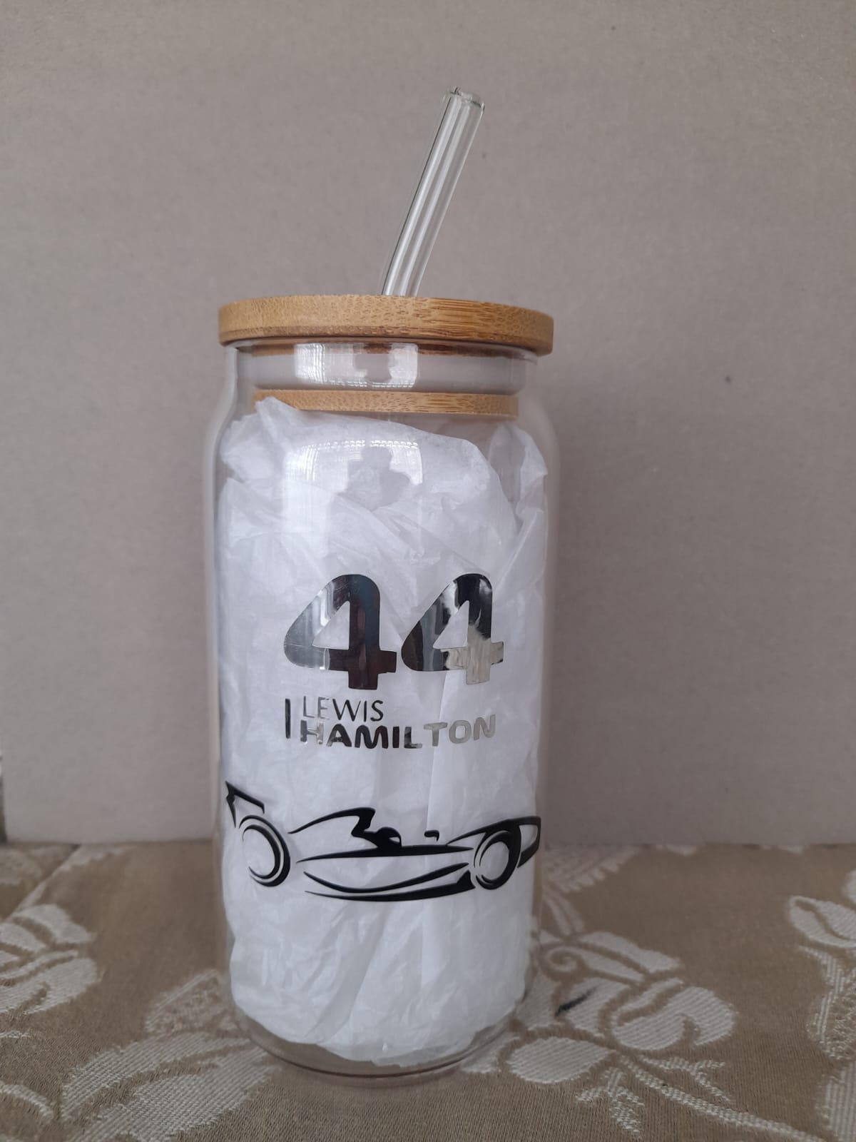 + Free PickupGlass Tumbler with bamboo lids and glass straw personalised with vinyl on both sides