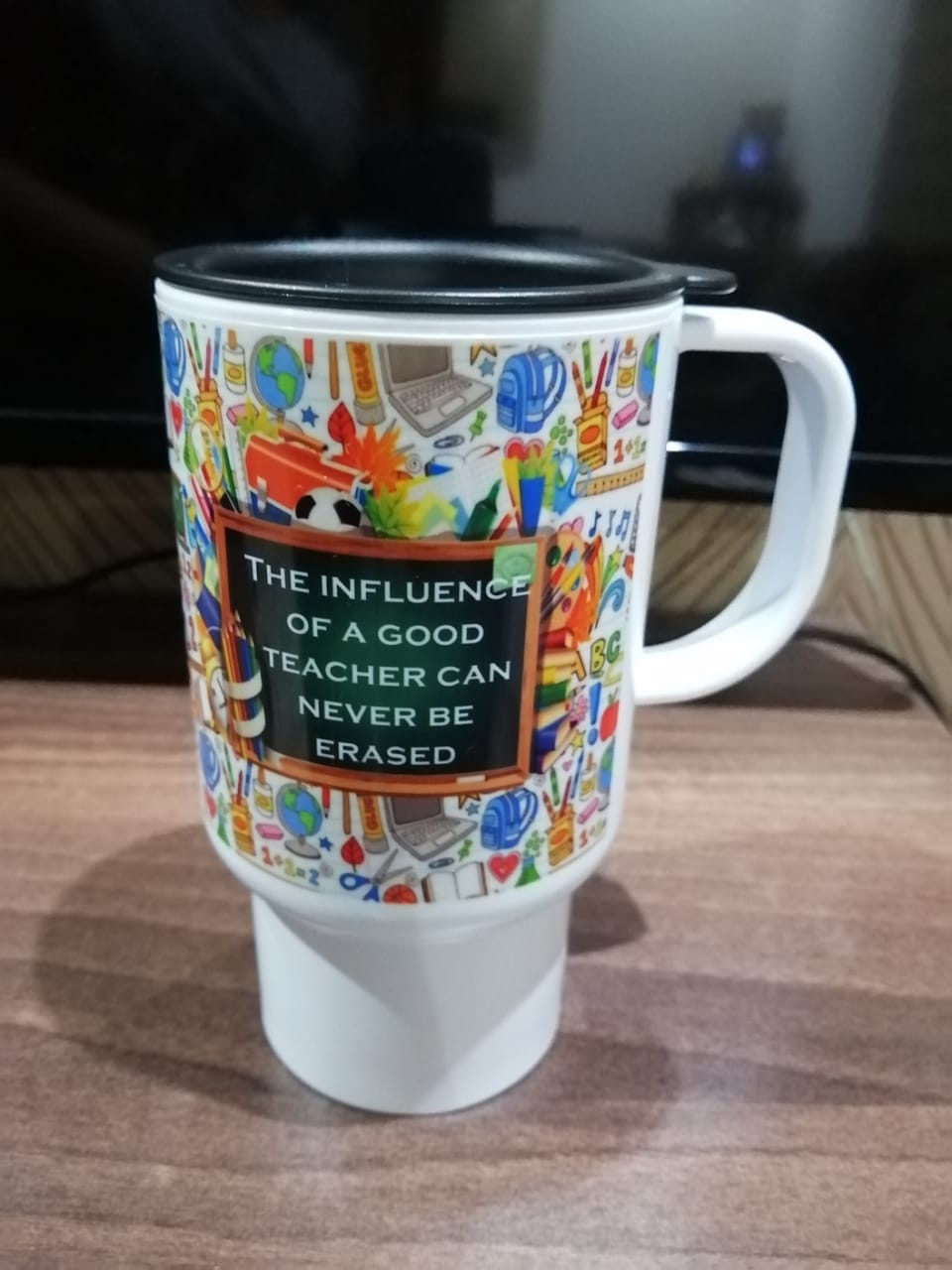 + Free PickupMug for hot or cold drinks for several hours and with a handle for convenient holding and on the go carrying. Also a lid to avoid spilling but allowing for sipping and a slide close top.